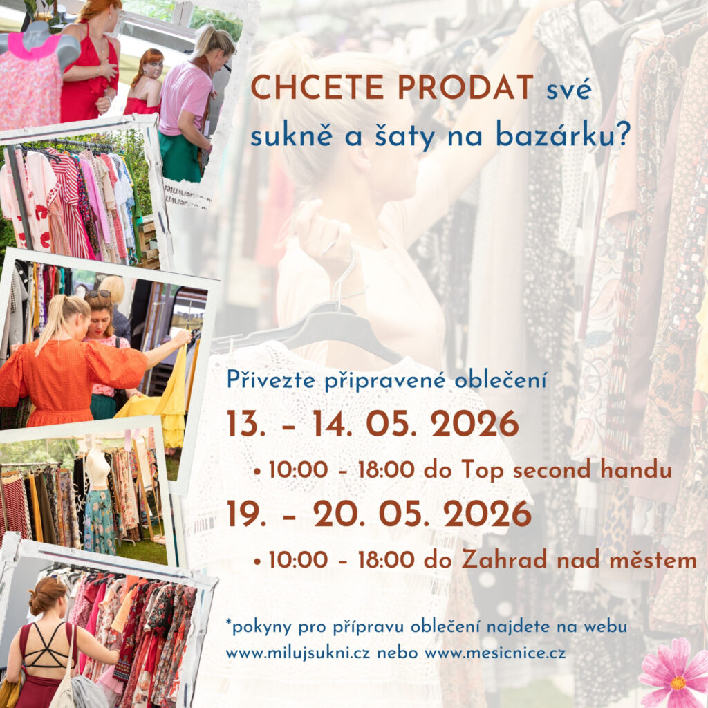 Opět, jako každý rok, můžete své vybrané sukně a šaty prodat na bazárku také VY. Máte krásné sukně a šaty, které víte, že už nenosíte a mohly by udělat radost jiné ženě? Prodejte je na bazárku. Informace najdete na konci článku, kde se dozvíte, jak zboží připravit a také kdy a kam ho přinést.